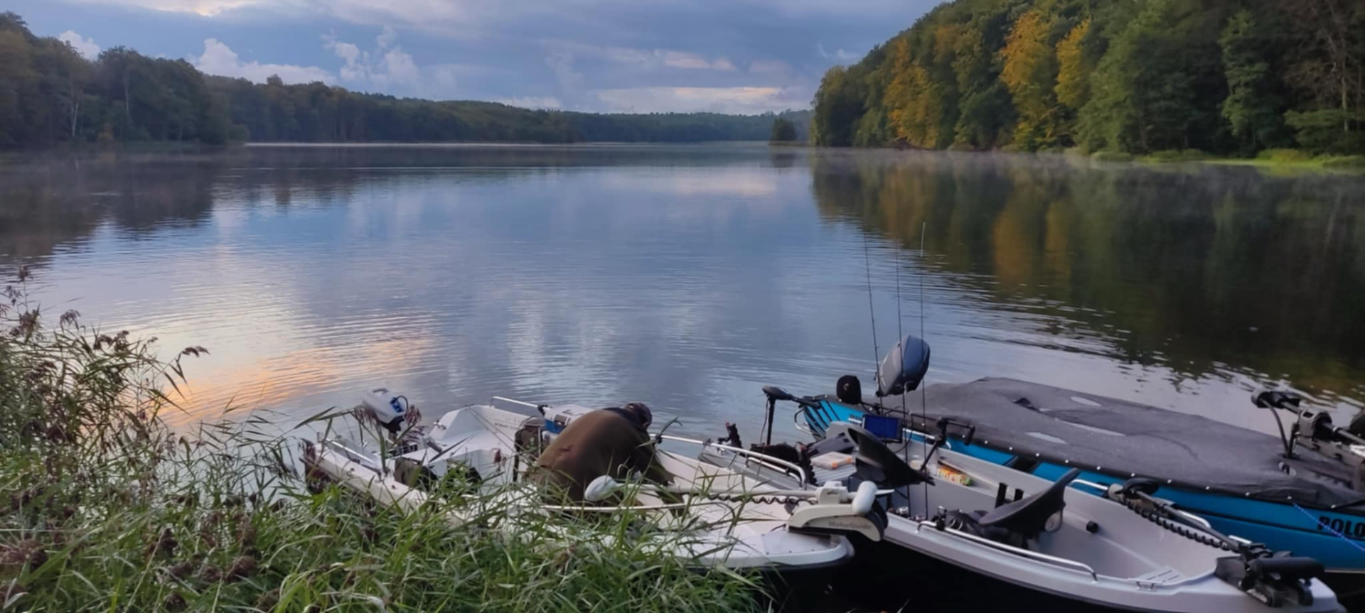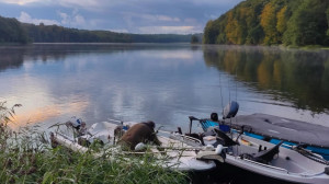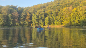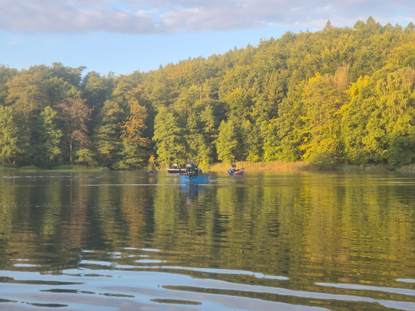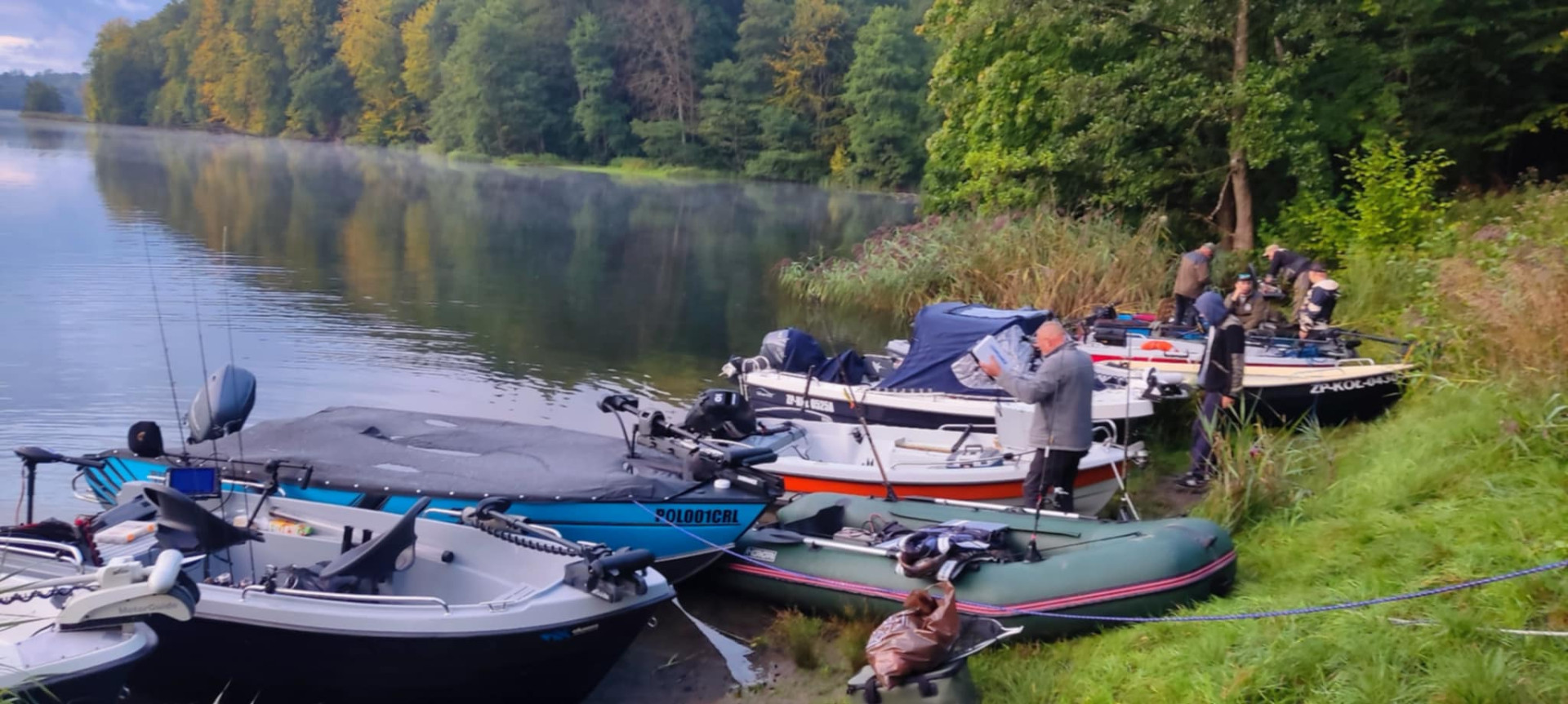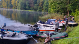 Po odprawie kilkanaście łódek i pontonów wypłynęło na jezioro. Większość wędkarzy nastawiła się na połów okoni, ale niektórzy podjęli się trudnego zadania złowienia szczupaków.