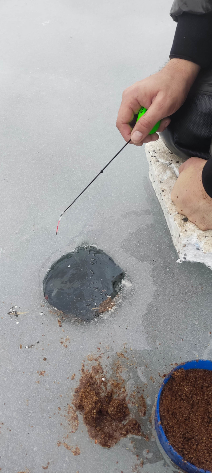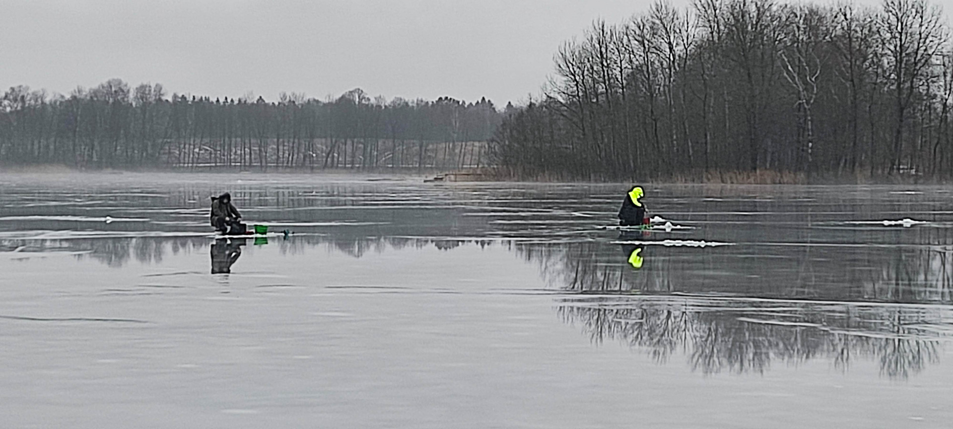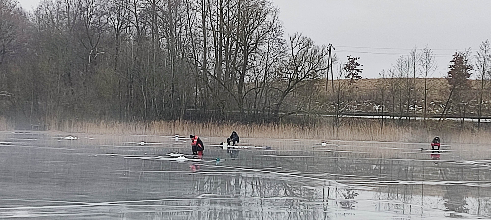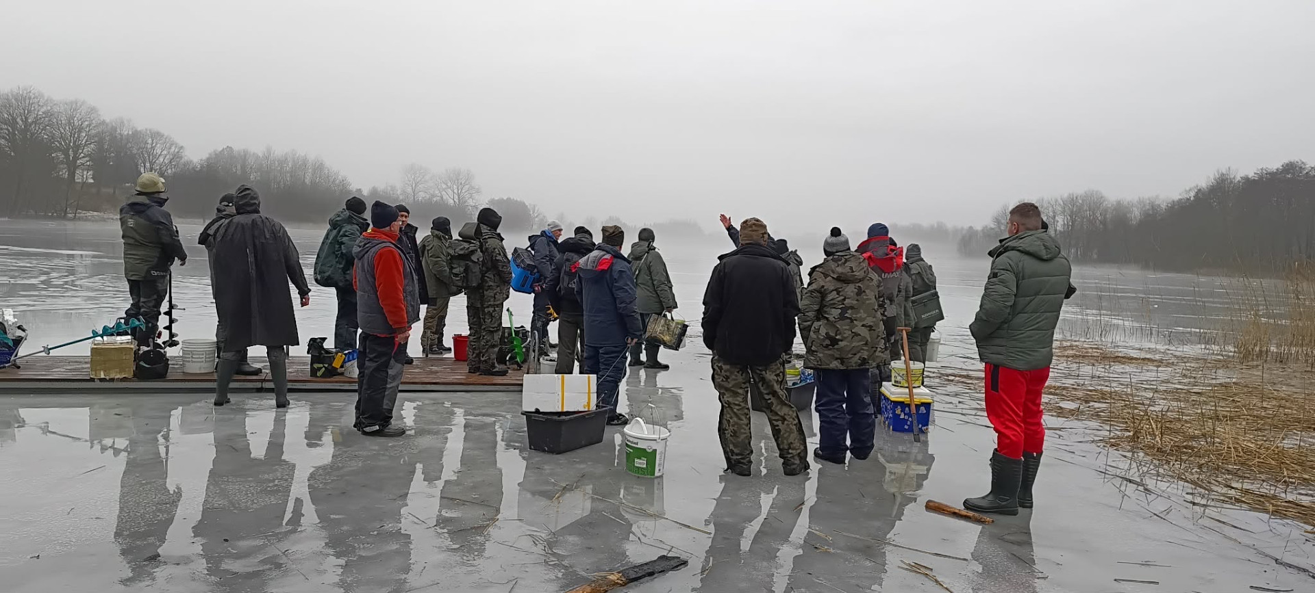 Dwa dni przed trzecimi już w tym roku podlodowymi zawodami członków Koła PZW Drzonowo mróz odpuścił. Dwa dni wystarczyły, by wody roztopowe utrudniły przebieg zawodów. Woda z roztopionych resztek śniegu i lodu nie mogła wsiąknąć do zamrożonego jeszcze gruntu. Wszędzie było mokro i ślisko. Na powierzchni jeziora zalegała prawie wszędzie dwucentymetrowa warstwa wody. Na brzegu błoto. Na dodatek prawie przez cały czas zawodów popadywał deszcz.