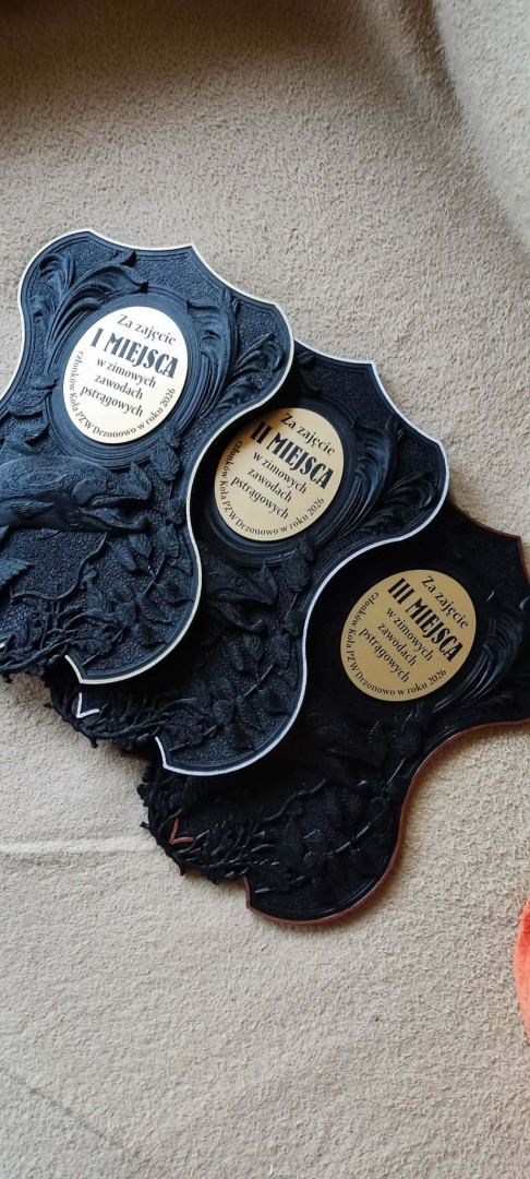 Już dotarły. Na niektóre nasze zawody. Ręczna robota, indywidualne projekty, elementy promujące Gminę Kg, GOSTiR Dźwirzyno, Koło PZW Drzonowo, solidne metalowe elementy.